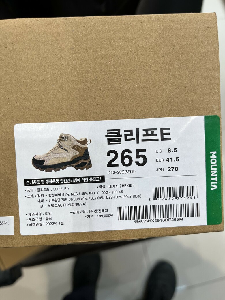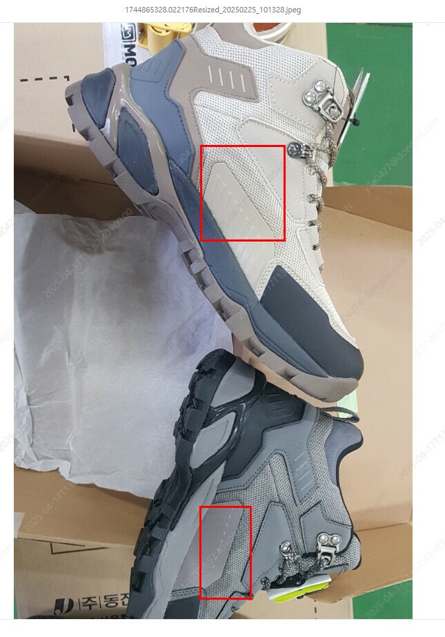 | 1. 제품 소재 (운동화인 경우에는 겉감, 안감을 구분하여 표시) | 갑피 - 합성피혁 51%, 메쉬 45% TPR 4% 내피 - 방수원단 70% (나일 |