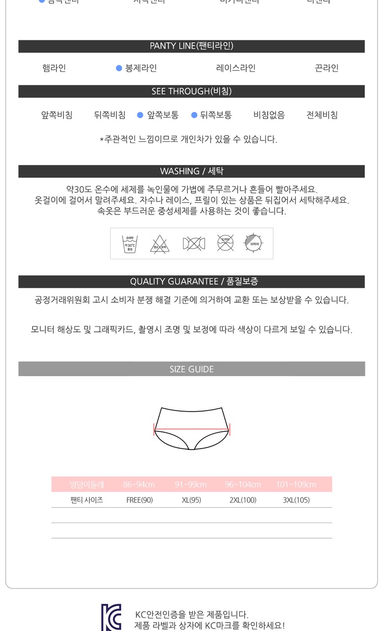 | 6. 세탁방법 및 취급시 주의사항 | 30도 온수로 중성세제를 사용하여 손세탁 및 분리세탁을 권장합니다. |