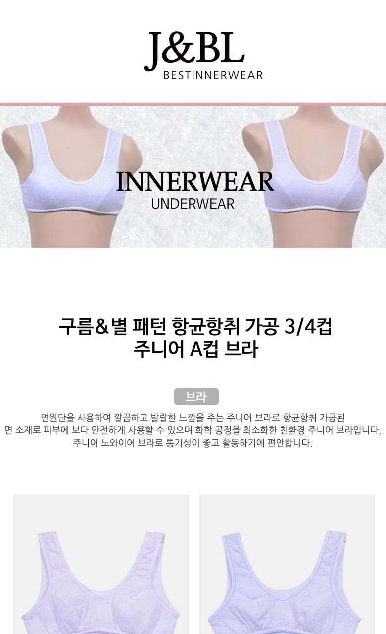 (조은)구름별 패턴 항균항취 가공 나노실리버 주니어 A컵 스포츠브라