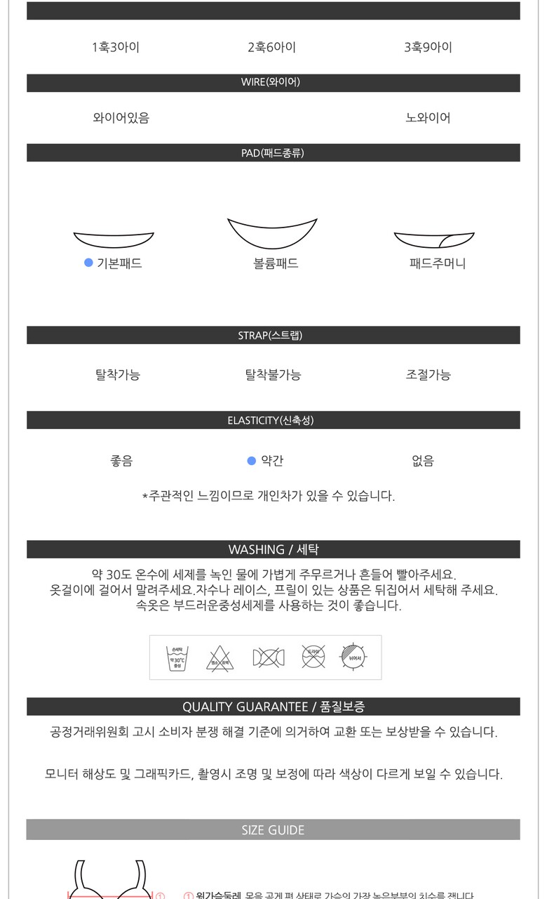 | 6. 세탁방법 및 취급시 주의사항 | 30도 온수로 중성세제를 사용하여 손세탁 및 분리세탁을 권장합니다. |
