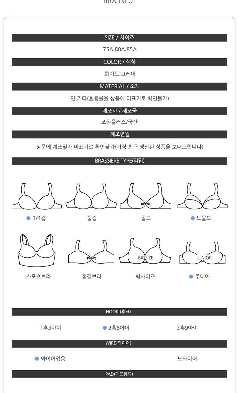 [조은]하트패턴무늬 와이어 A컵 3단계 주니어브라