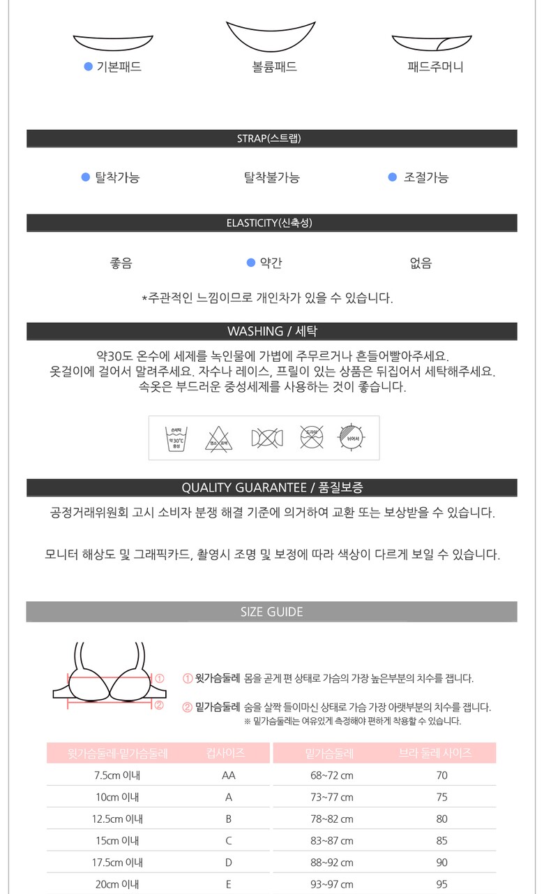 | 6. 세탁방법 및 취급시 주의사항 | 30도 온수로 중성세제를 사용하여 손세탁 및 분리세탁을 권장합니다. |