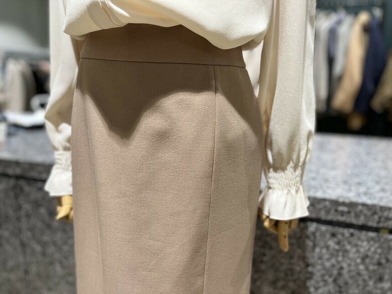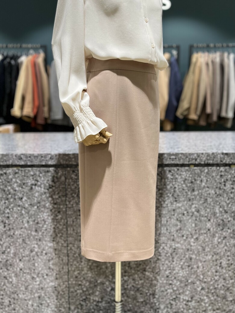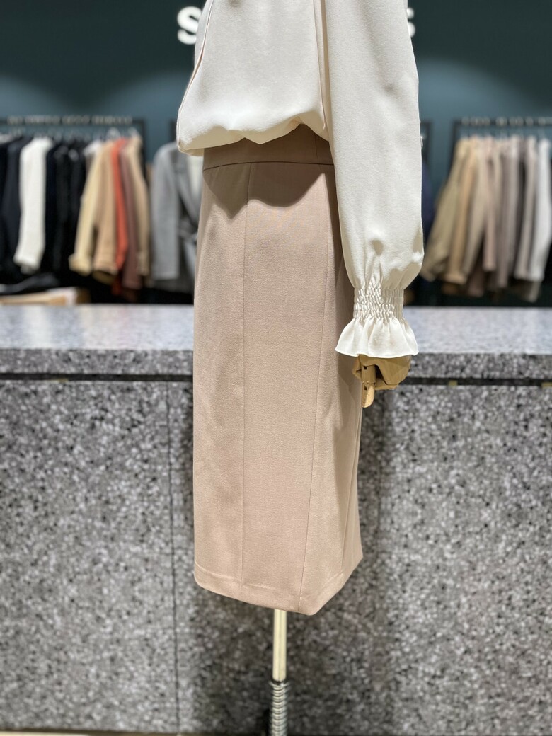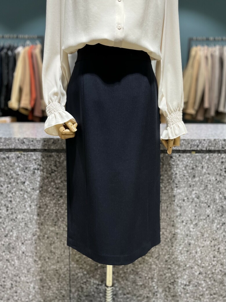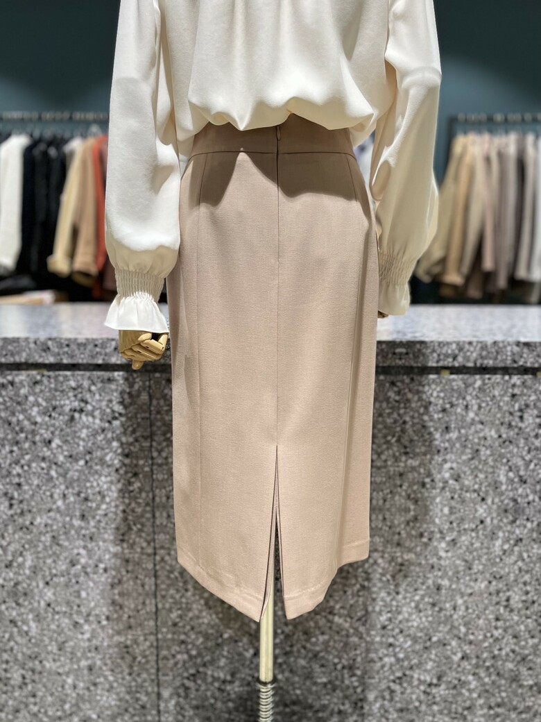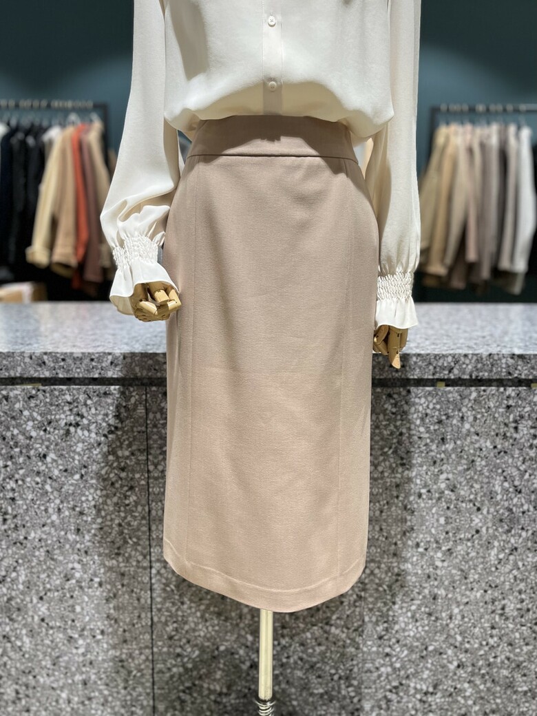 벨티드 투버튼 싱글 자켓과 세트상품으로 구성된 H라인 스커트입니다.