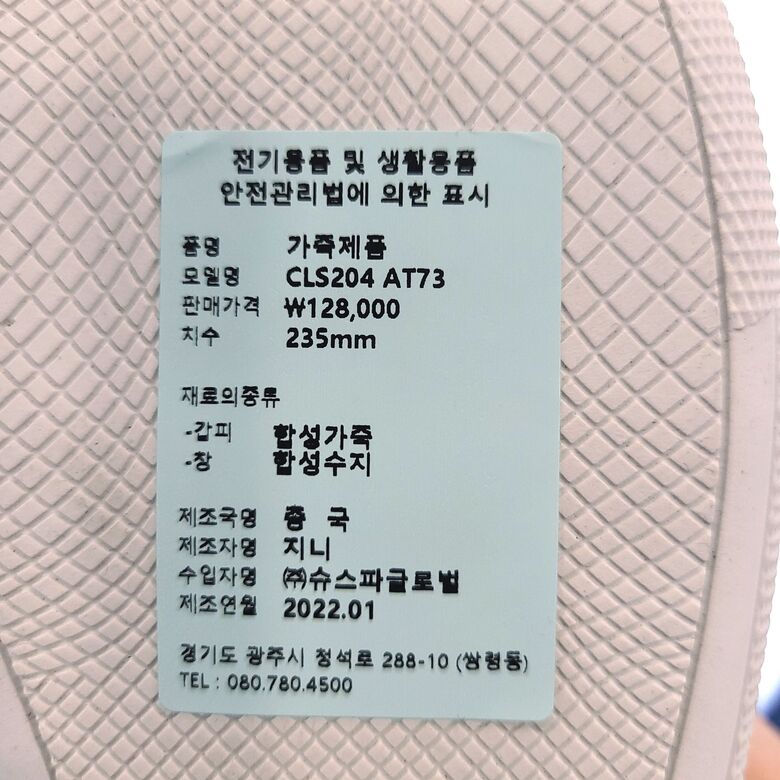 | 1. 제품 소재 (운동화인 경우에는 겉감, 안감을 구분하여 표시) | 합성가죽 |