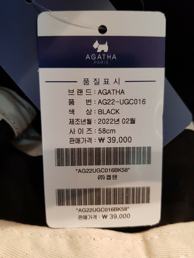 [캡텐] 아가타 세로자수 배색부자재 자수벙거지 (AG22UGC016)