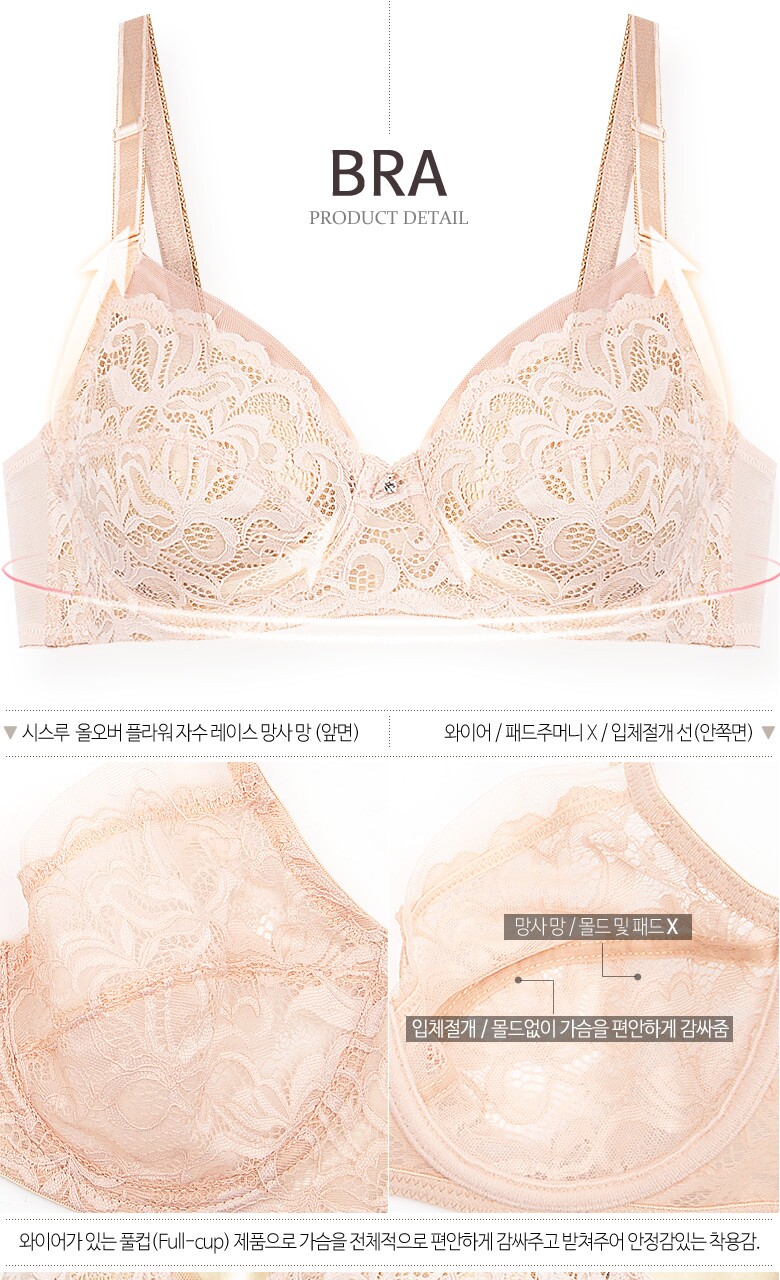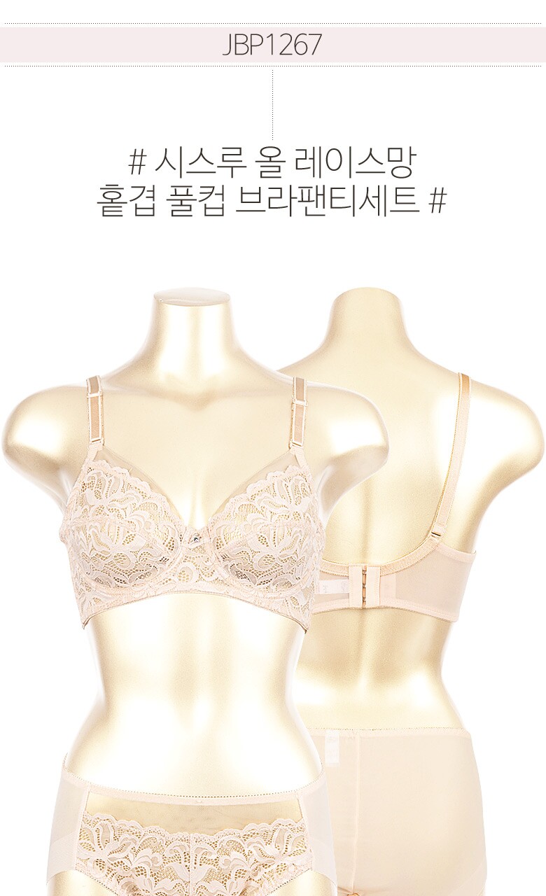 [비너스 자스민] 시스루 올 레이스망 홑겹 풀컵 브라팬티세트 jbp1267
