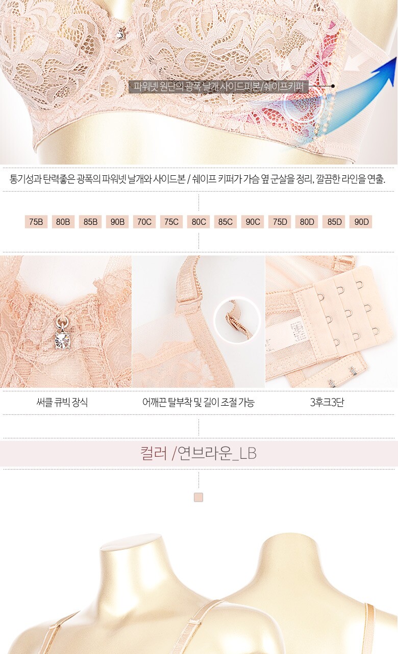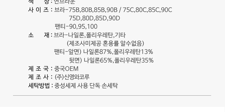 3. 치수 | 브라:75B,80B,85B,90B,75C,80C,85C,90C,75D,80D,85D,90D / 팬티:90,95,100 |