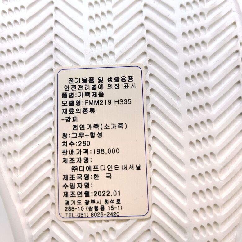 | 1. 제품 소재 (운동화인 경우에는 겉감, 안감을 구분하여 표시) | 소가죽 |