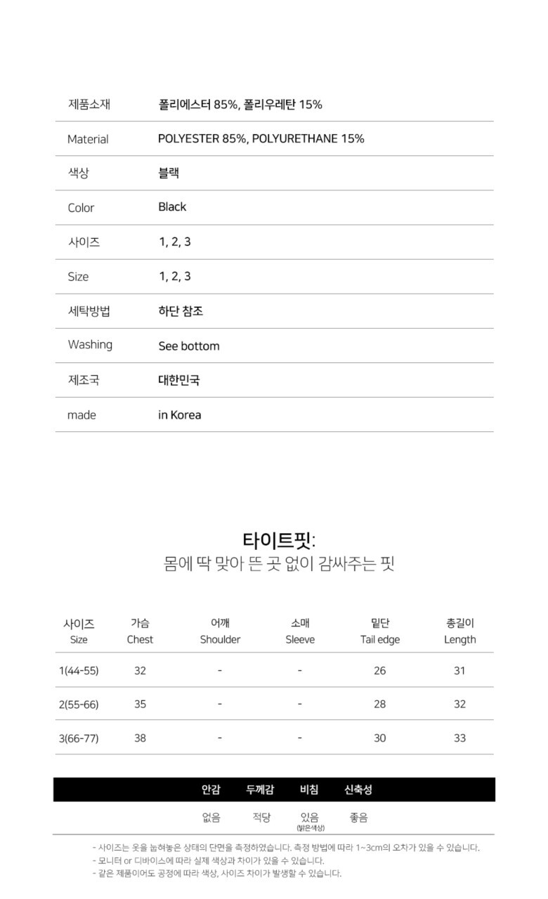 1. 제품 소재 (섬유의 조성 또는 혼용률을 백분율로 표시, 기능성인 경우 성적서 또는 허가서) | 폴리에스터85%, 폴리우레탄 15% |