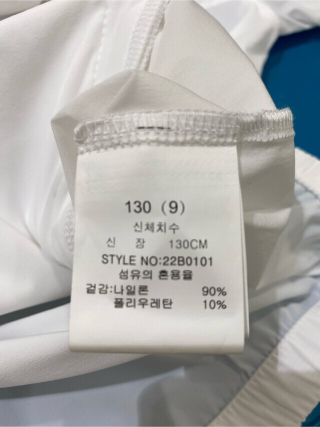 | 1. 제품 소재 (섬유의 조성 또는 혼용률을 백분율로 표시, 기능성인 경우 성적서 또는 허가서) | 나일론90%,폴리우레탄10% |