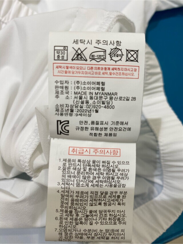 | 6. 세탁방법 및 취급시 주의사항 | 손세탁 |