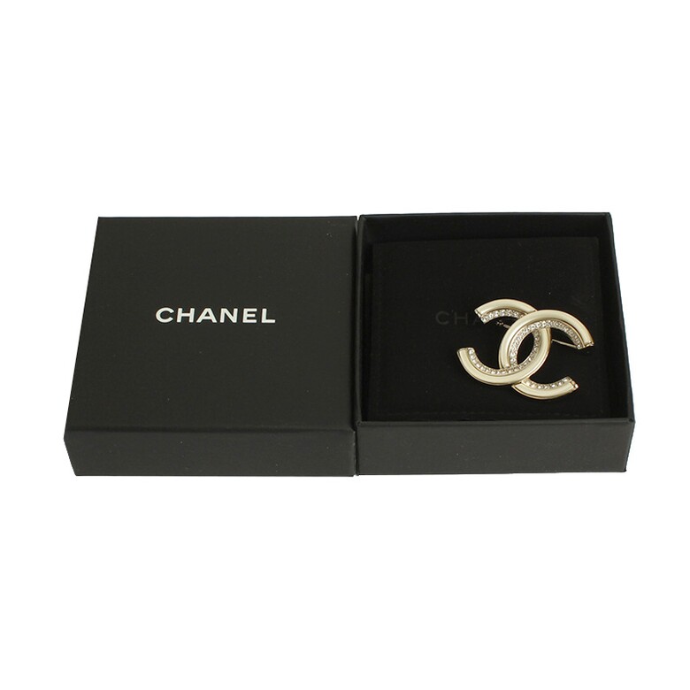 [중고명품] 샤넬 금장 진주펄 크리스탈 로고 브로치