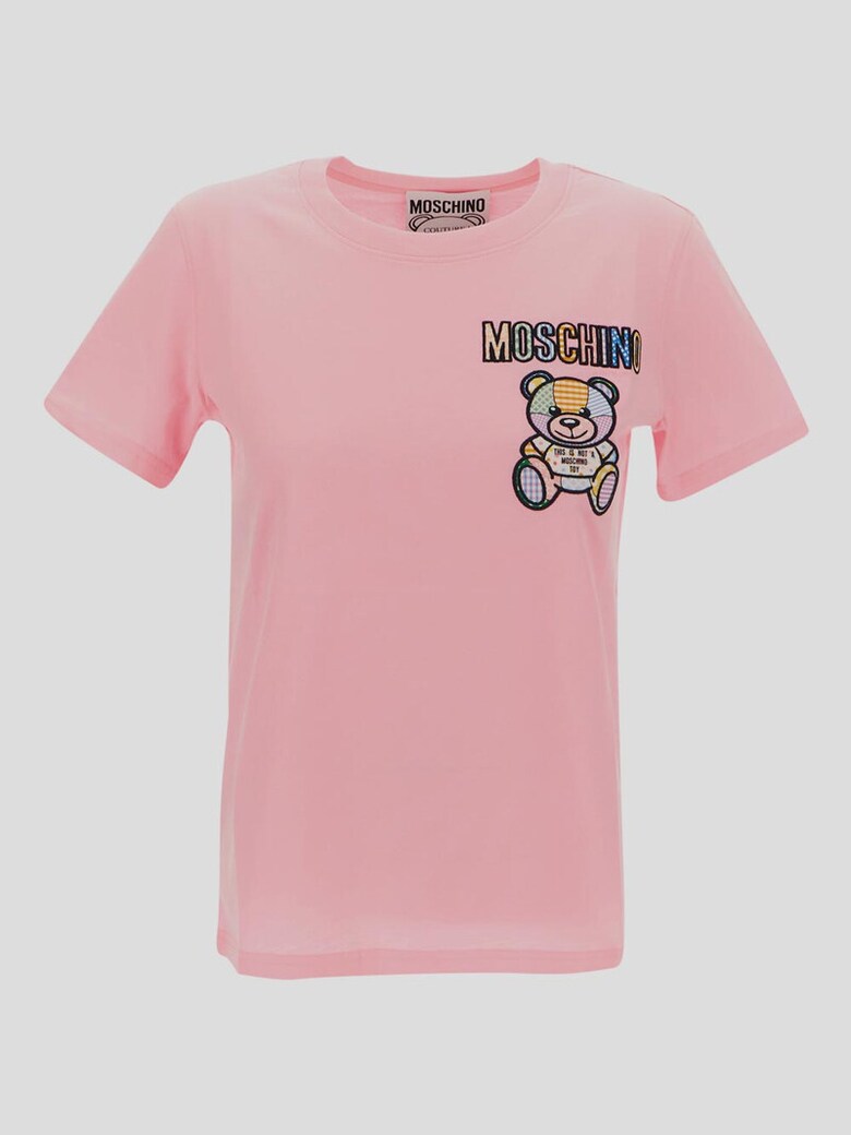 [명품] 모스키노 핑크 베어 프린트 반팔 티셔츠 07060441 V2224