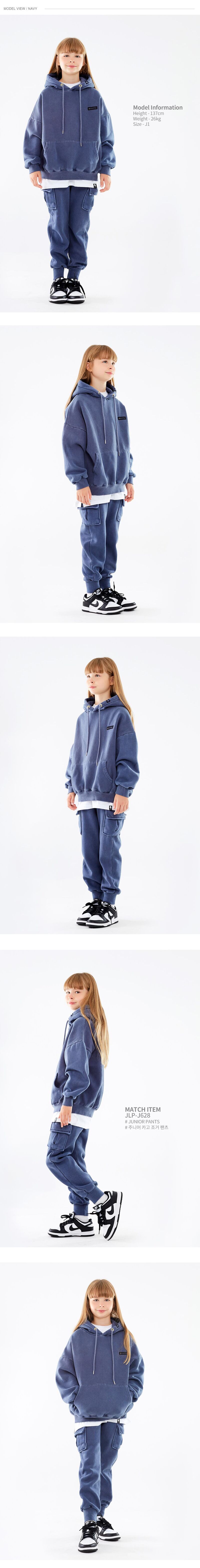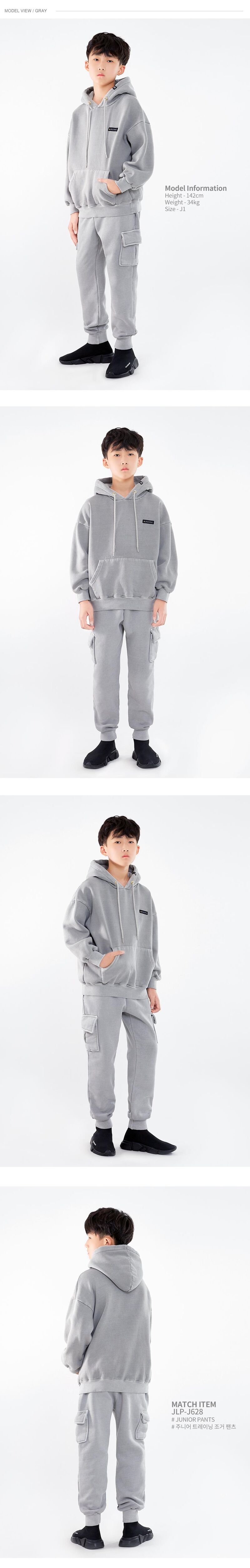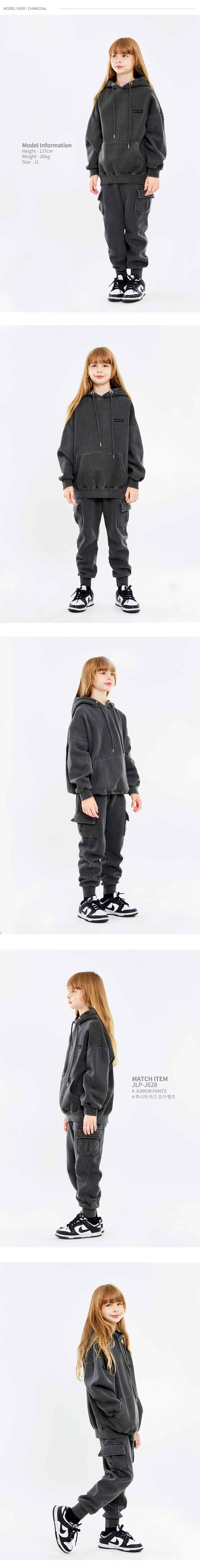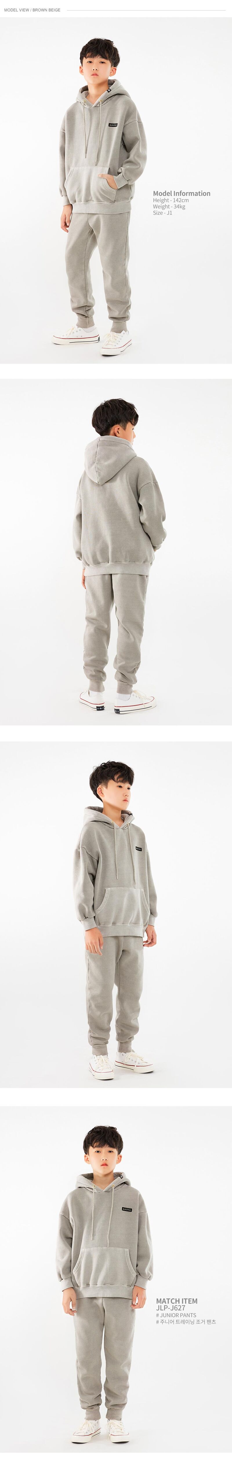 주니어 미니멀 로고 패치 피그먼트 오버핏 후드티셔츠 JHT-J457