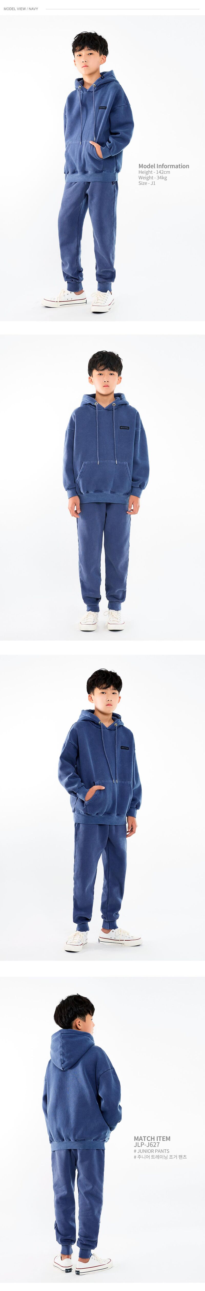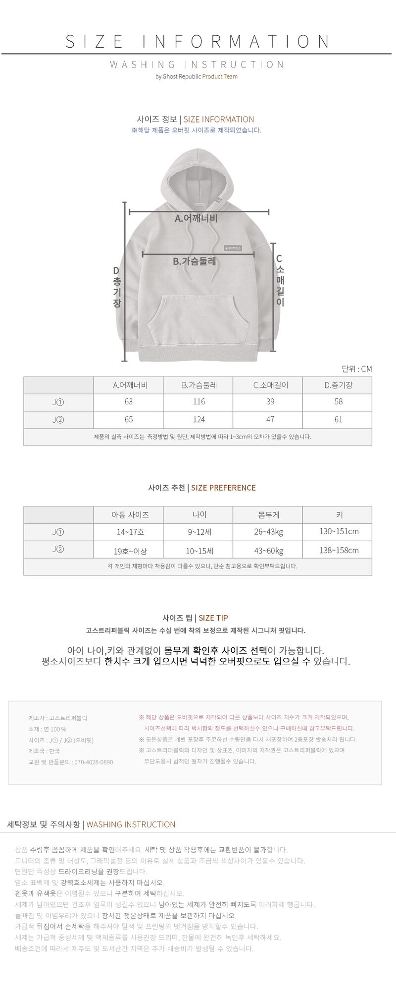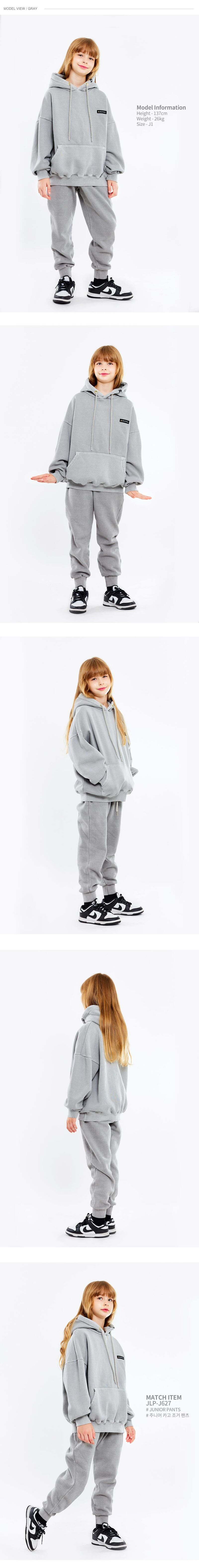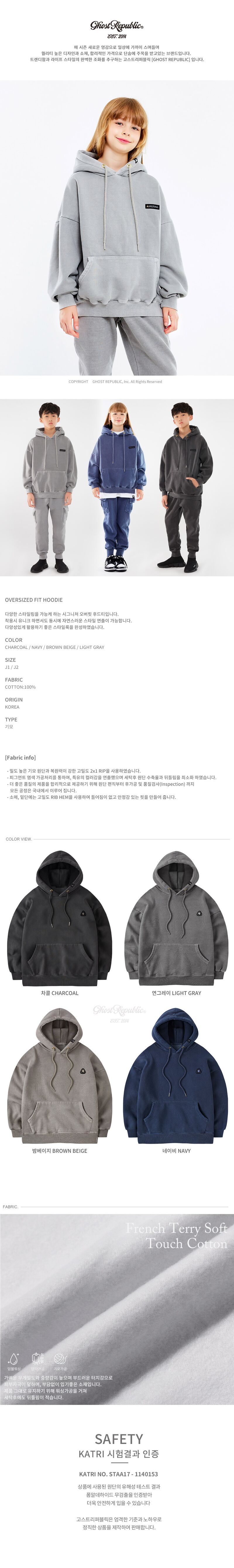 주니어 미니멀 로고 패치 피그먼트 오버핏 후드티셔츠 JHT-J457