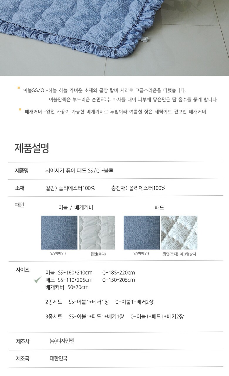 [디자인엔] 시어서커 퓨어 패드 SS/Q -블루