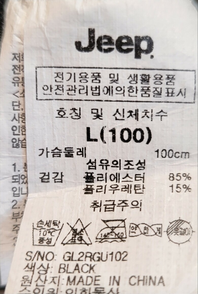 | 1. 제품 소재 (섬유의 조성 또는 혼용률을 백분율로 표시, 기능성인 경우 성적서 또는 허가서) | 겉감:면 100% |