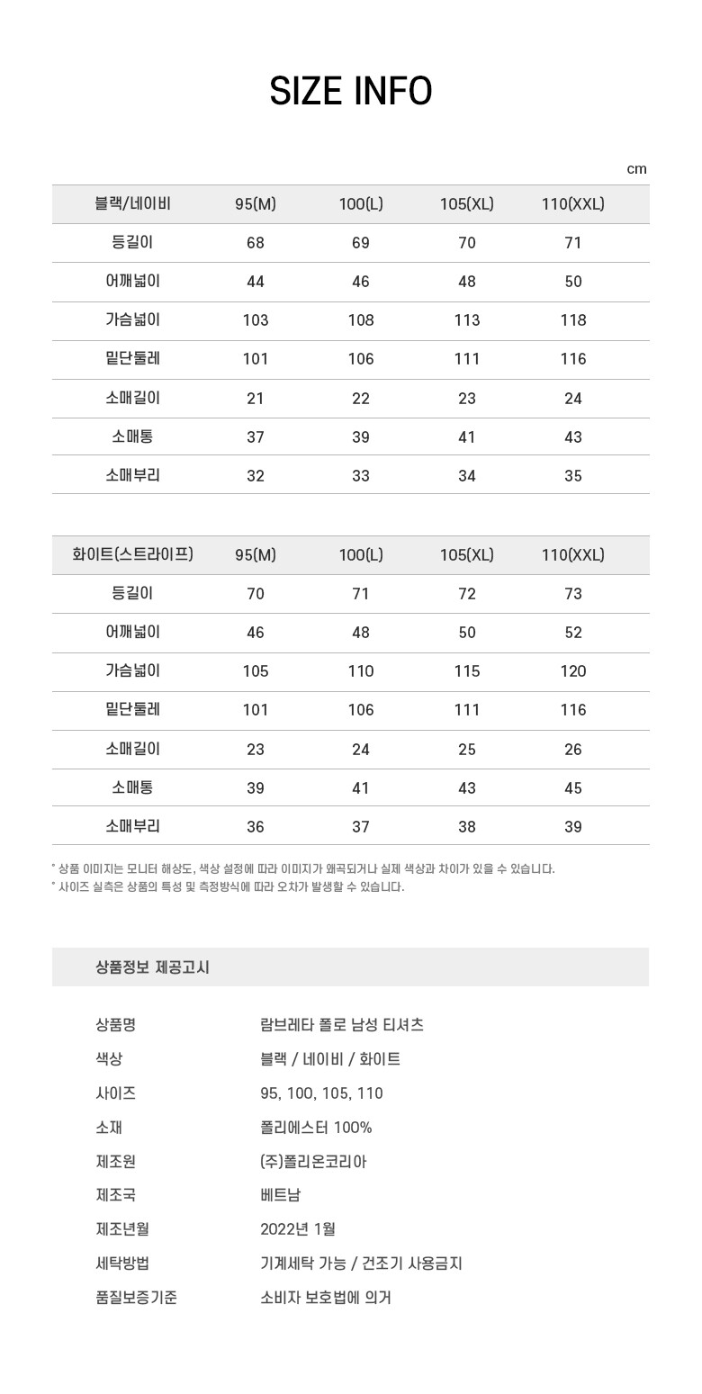 | 3. 치수 | 남성 : 95,100,105,110