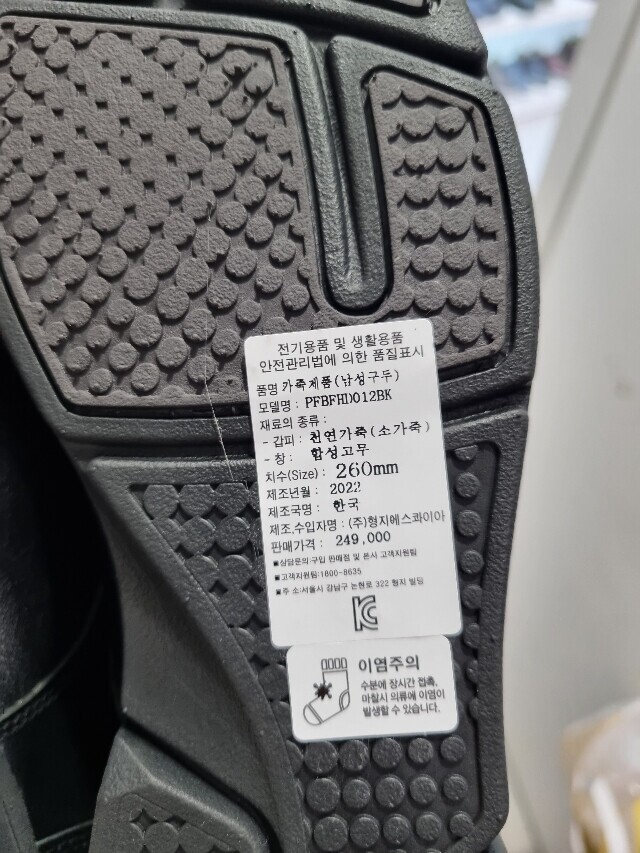 | 1. 제품 소재 (운동화인 경우에는 겉감, 안감을 구분하여 표시) | 소가죽 |
