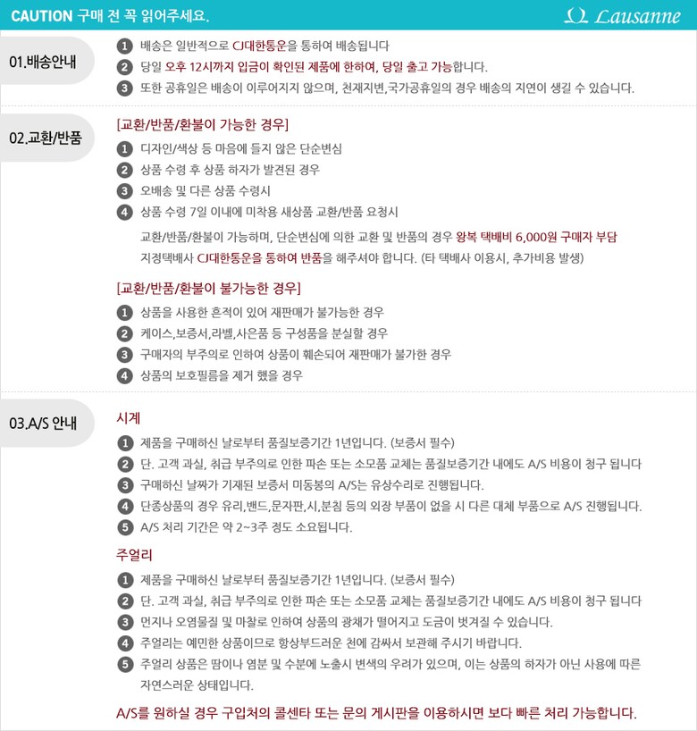 반품 유의사항