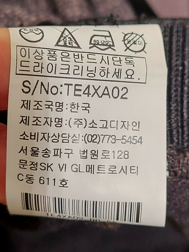 · 취급 시 주의사항 : 물세탁 금지, 기본 드라이