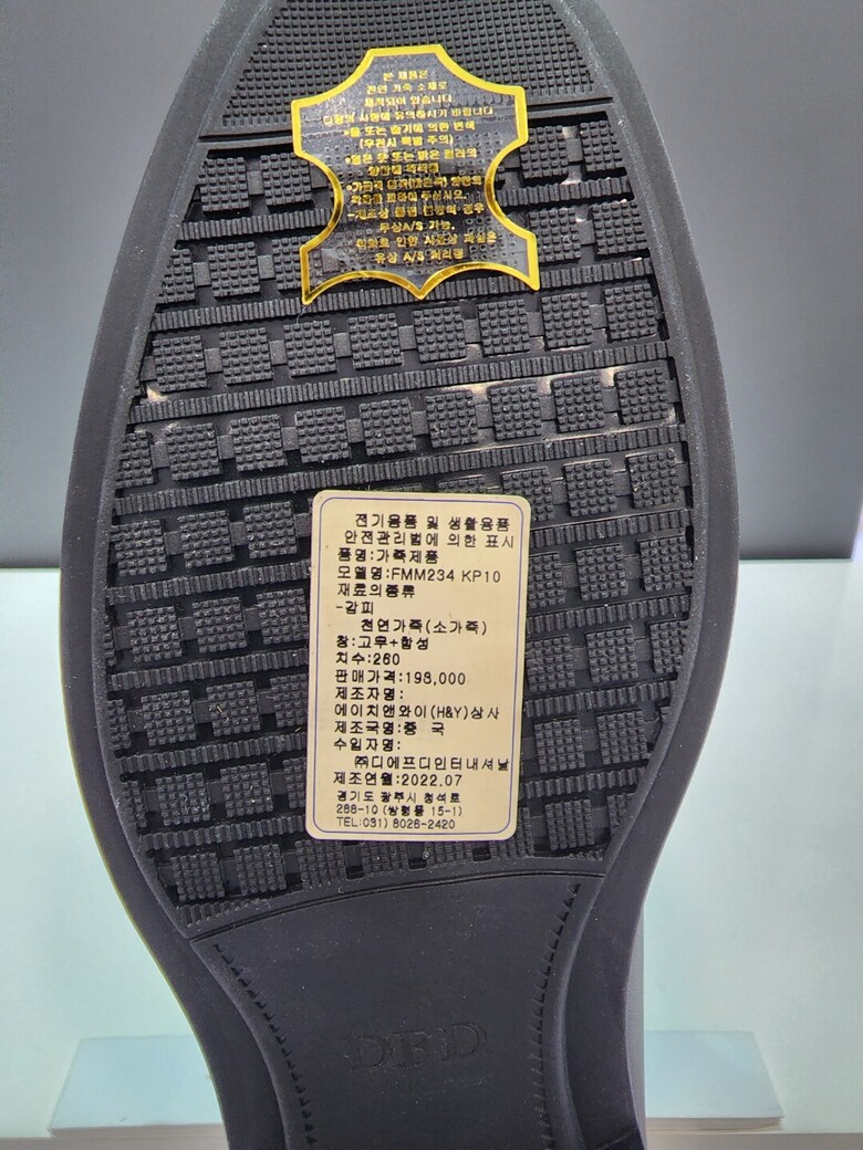 | 1. 제품 소재 (운동화인 경우에는 겉감, 안감을 구분하여 표시) | 소가죽 |