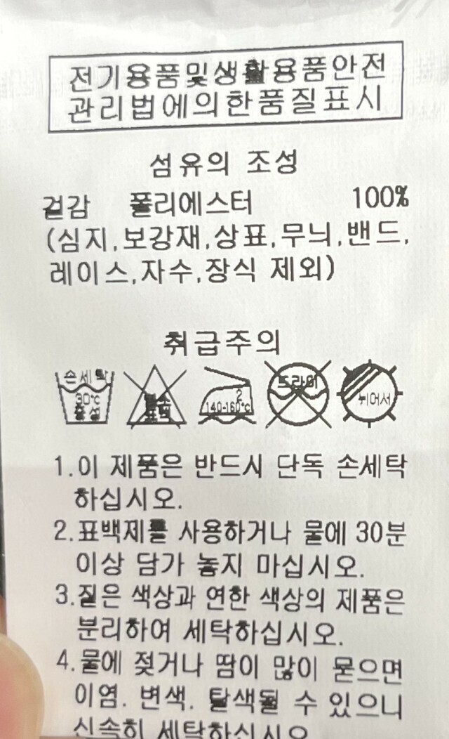 6. 세탁방법 및 취급시 주의사항 단독 손세탁