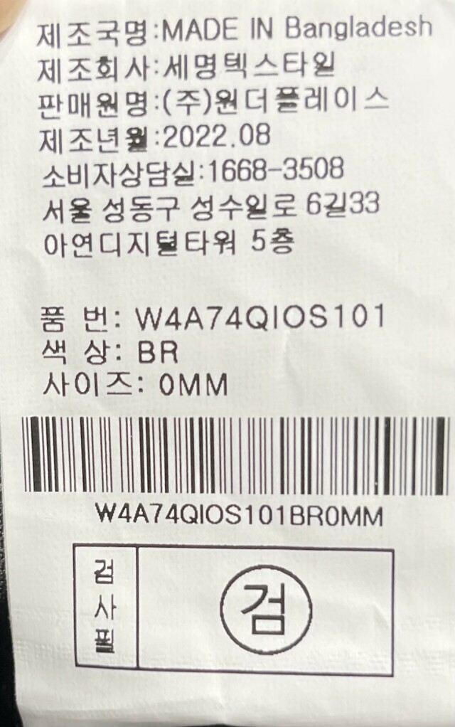 • 아울렛 상품의 특성 상 “택이 훼손”된 경우가 있으나 이는 불량이 아니며 무료 반품 대상 상품이 아닙니다.