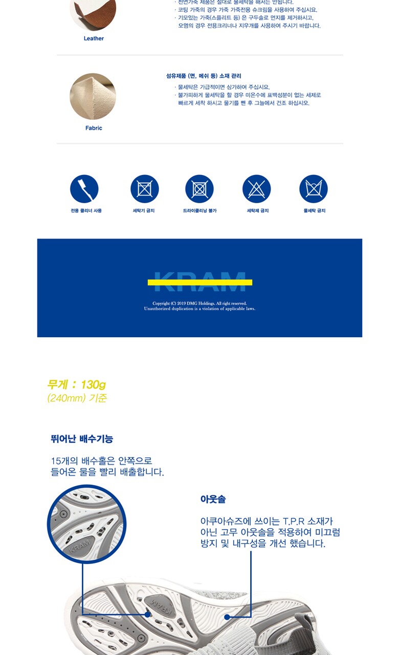 6. 취급시 주의사항 | 세탁시 재질에 따라 변질 및 변색이 될 수 있습니다. |