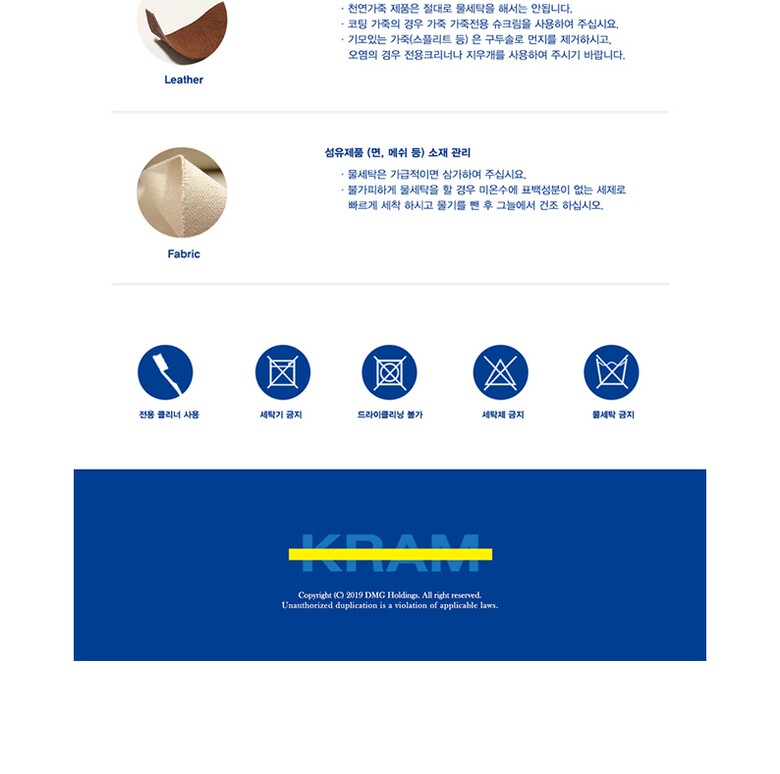 6. 취급시 주의사항 세탁시 재질에 따라 변질 및 변색이 될 수 있습니다.