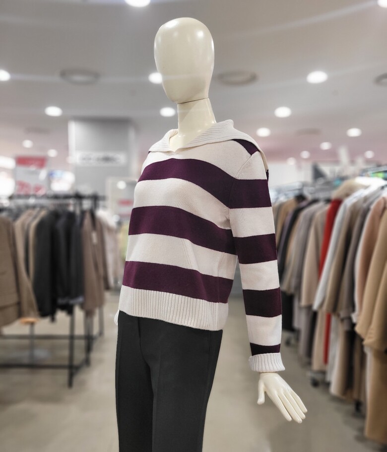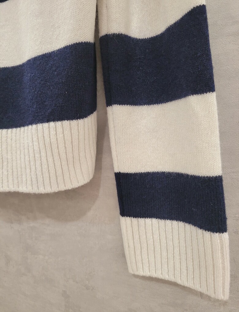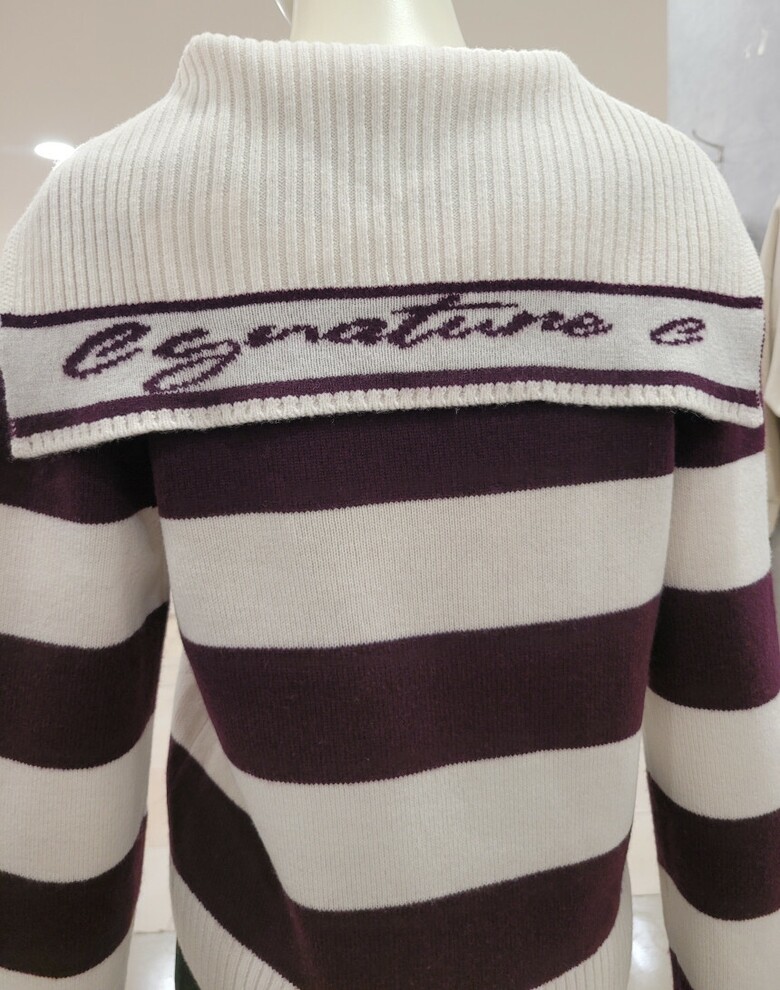 레터링 세일러 카라 스트라이프 니트
