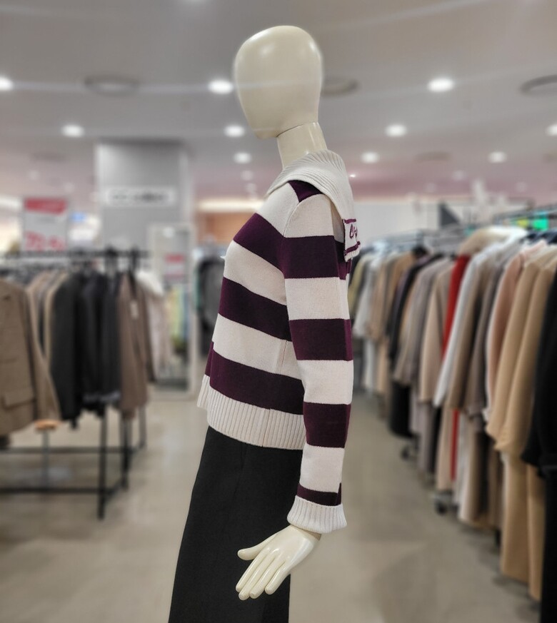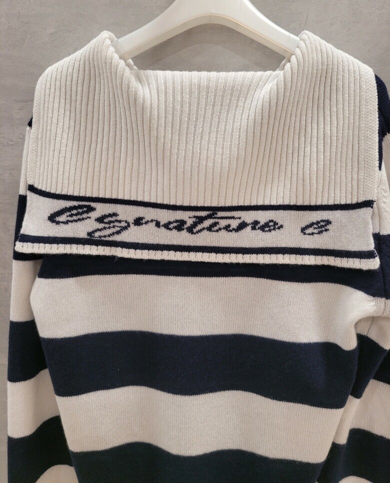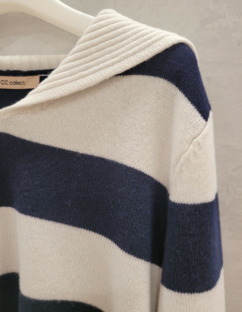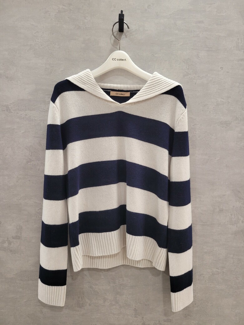씨씨콜렉트 레터링 세일러 카라 스트라이프 니트 E224KSK133
