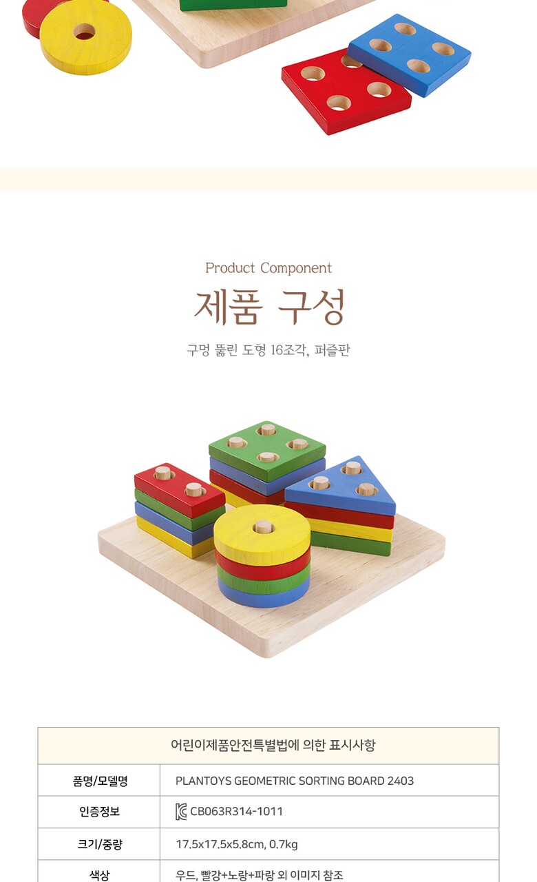 1. 품명 및 모델명 | PLANTOYS GEOMETRIC SORTING BOARD/2403 |