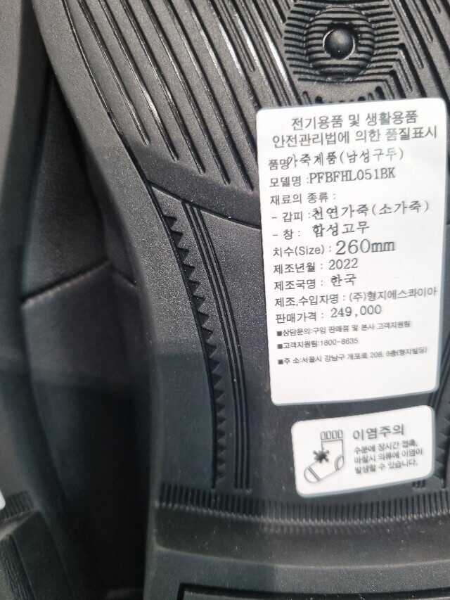 | 1. 제품 소재 (운동화인 경우에는 겉감, 안감을 구분하여 표시) | 소가죽 |