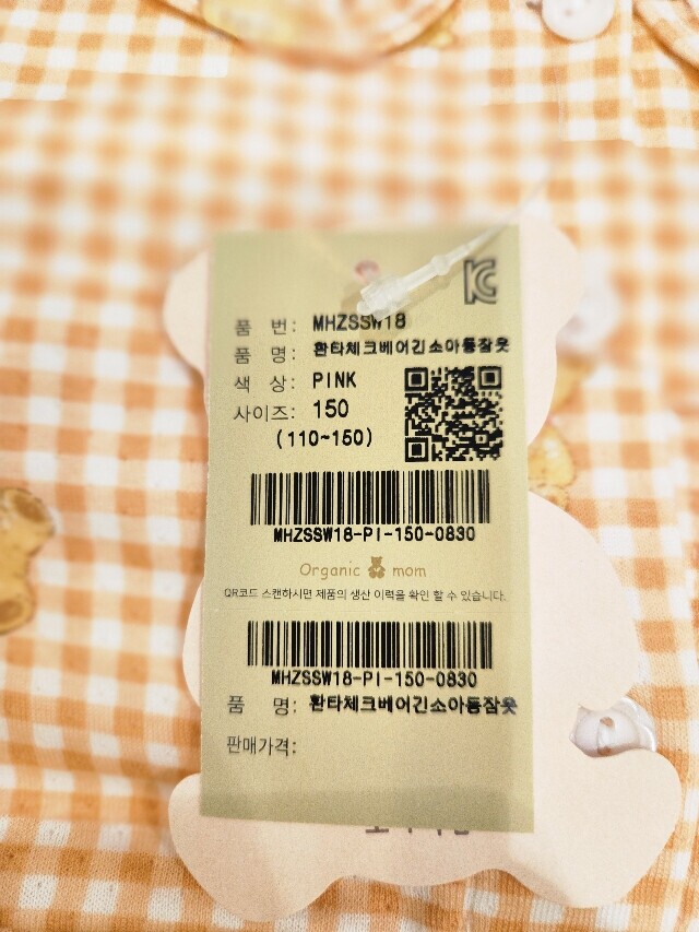 환타체크베어긴소아동잠옷MHZSSW18