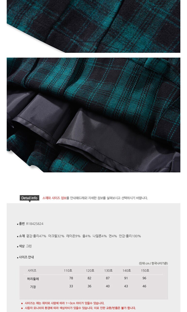 여아 주름 포인트 모직 체크 스커트 _R1842S624