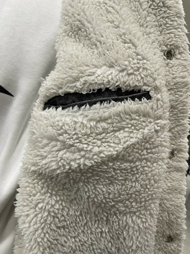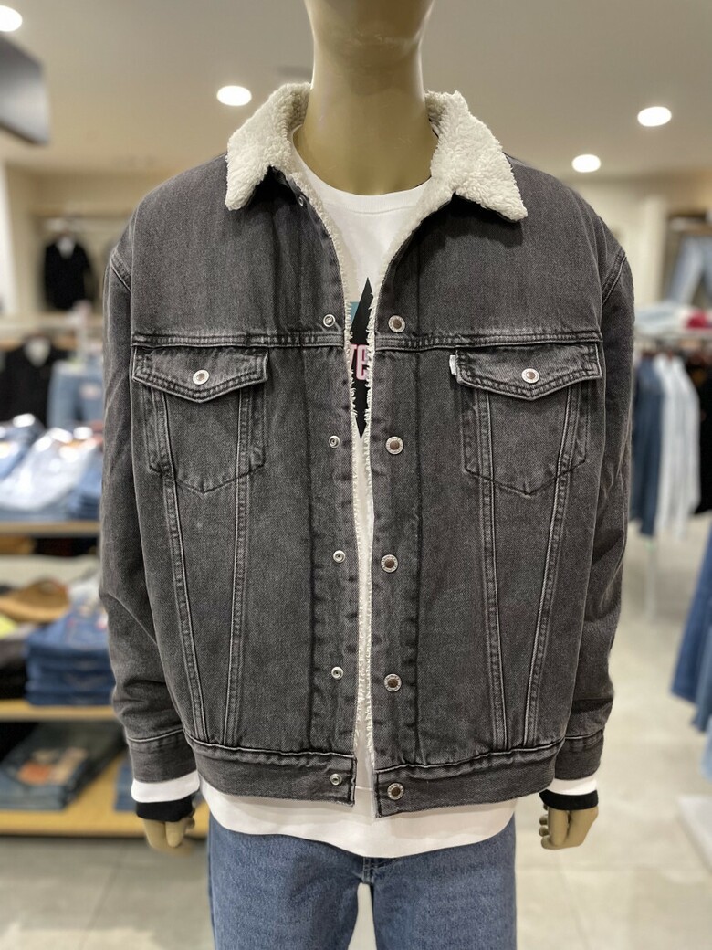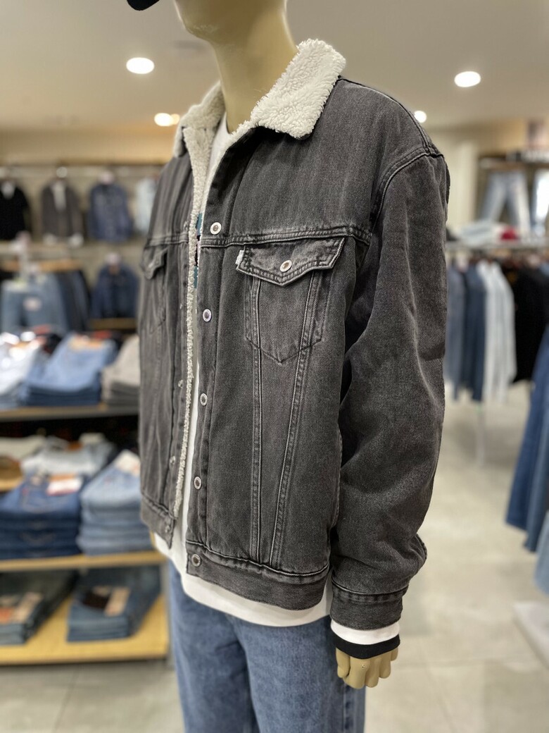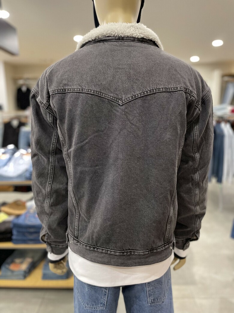 안쪽에 양털이 들어간 남성 쉐르파 트러커 재킷입니다.