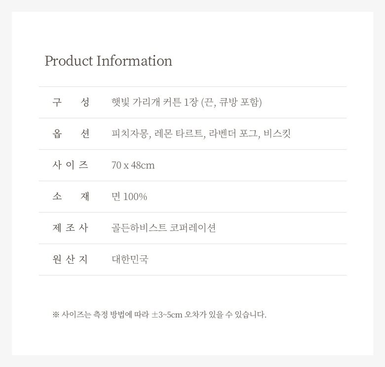 | 4. 제품구성 | 커튼 1장, 커튼줄 1개, 흡착판 2개 |