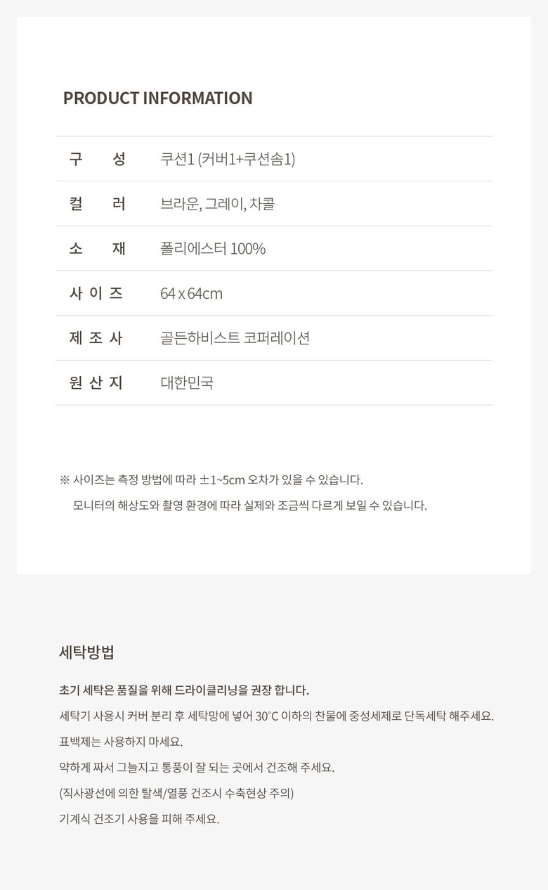 | 4. 제품구성 | 커버 1+쿠션솜 1 |