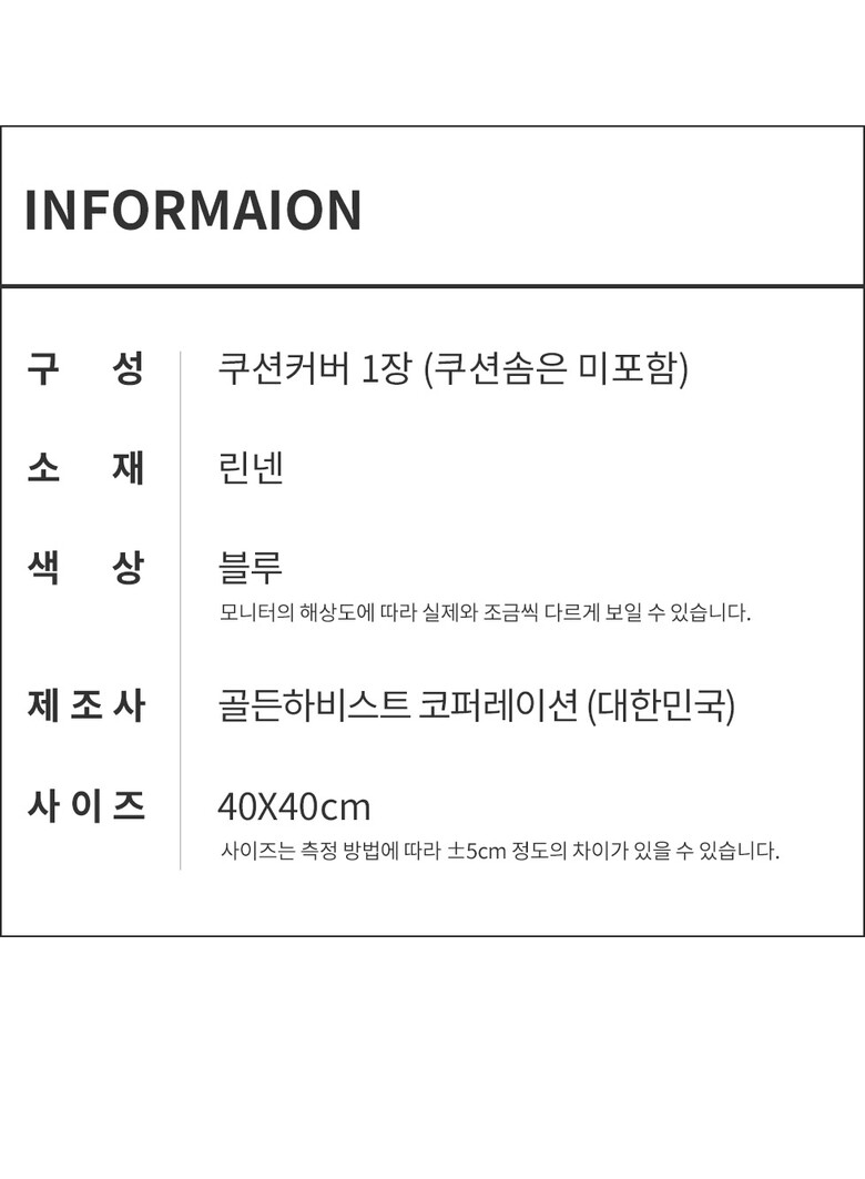 린넨 하이드레인저 사각 쿠션커버 40x40