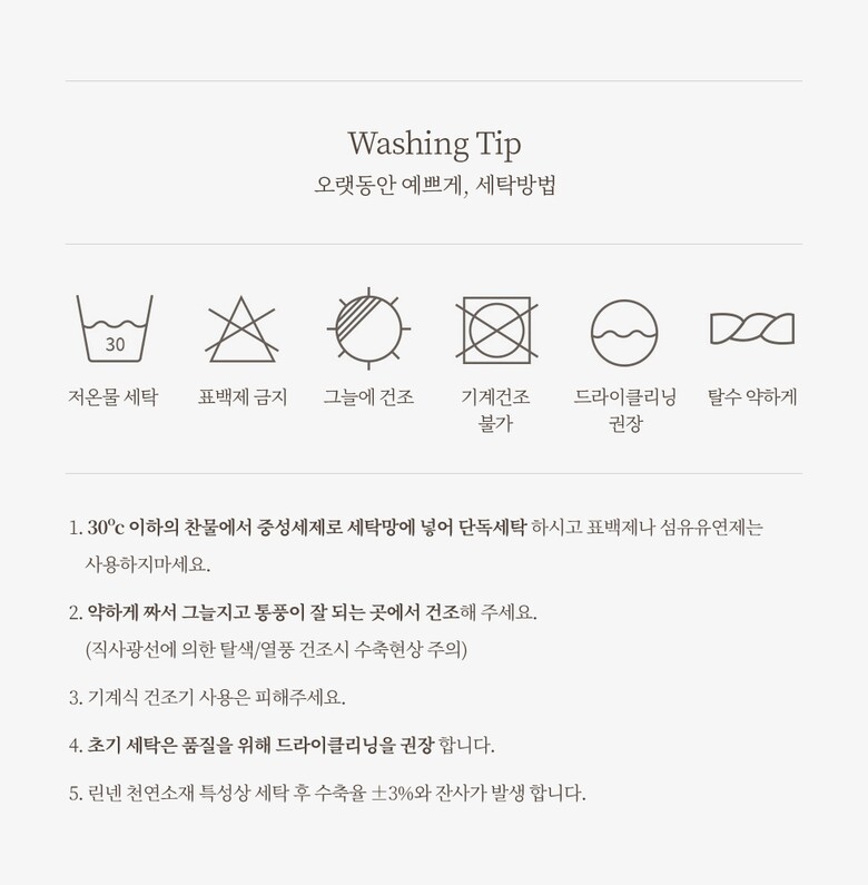 | 7. 세탁방법 및 취급시 주의사항 | 드라이클리닝 해 주세요. |