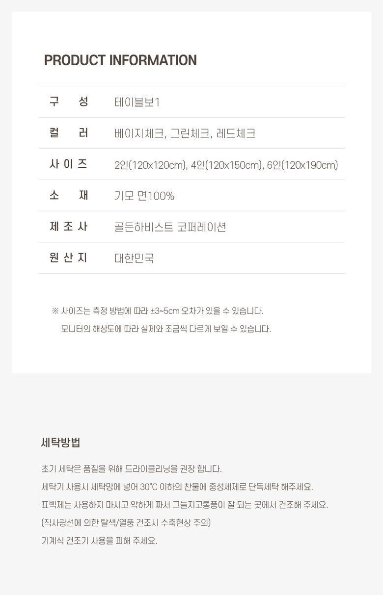 메리 체크 테이블보 3color