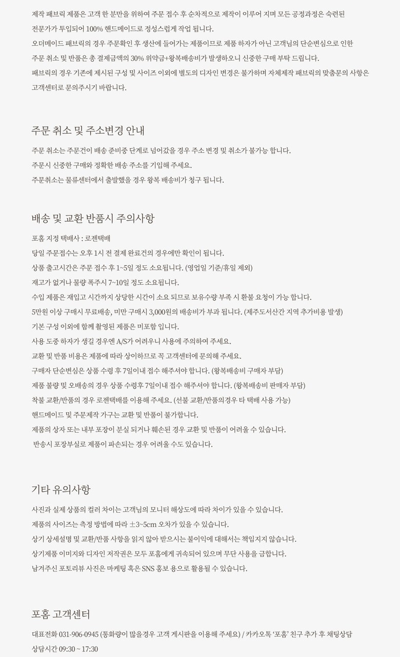 • 모든 규정은 전자상거래법에 의거하며, 택배사정으로 배송이 지연된 경우 재화를 공급받은 날로부터 7일 이내에 반품 가능합니다.