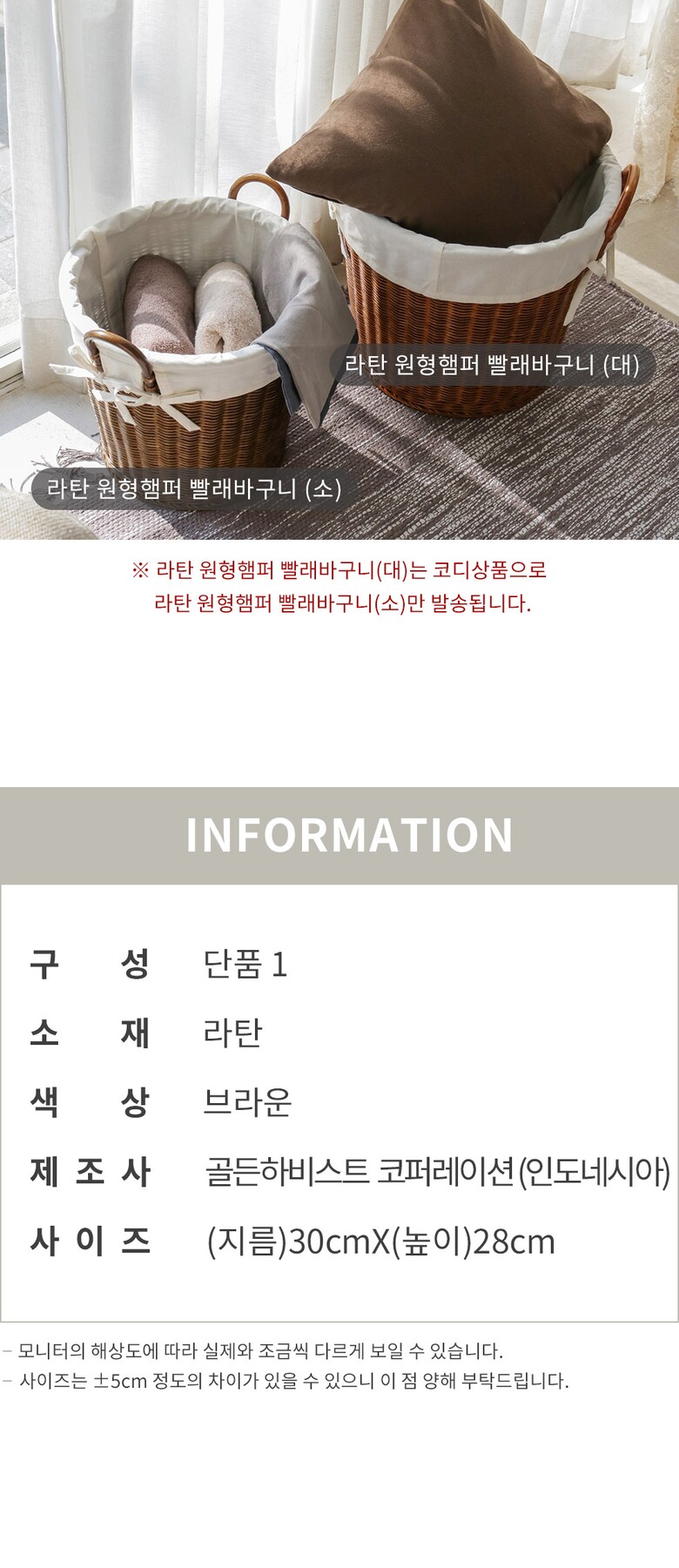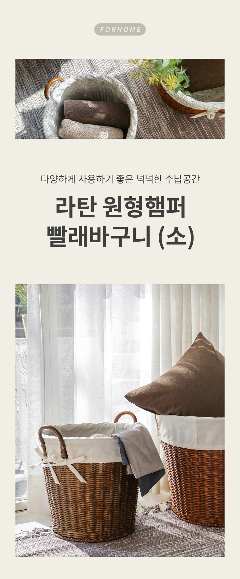 라탄 원형햄퍼 빨래바구니 (소)