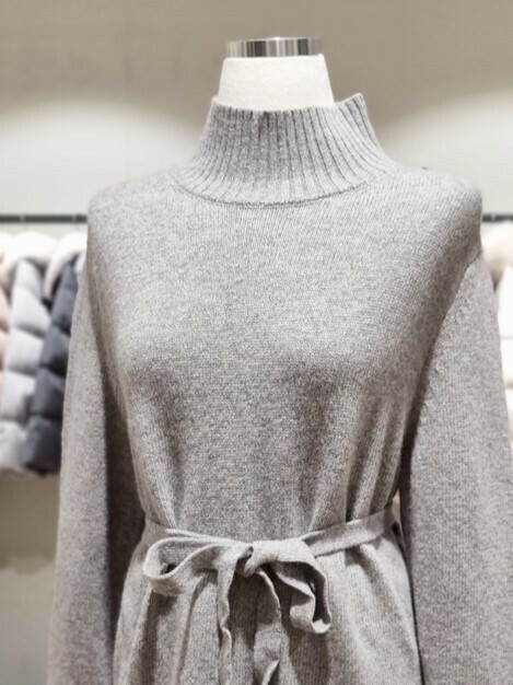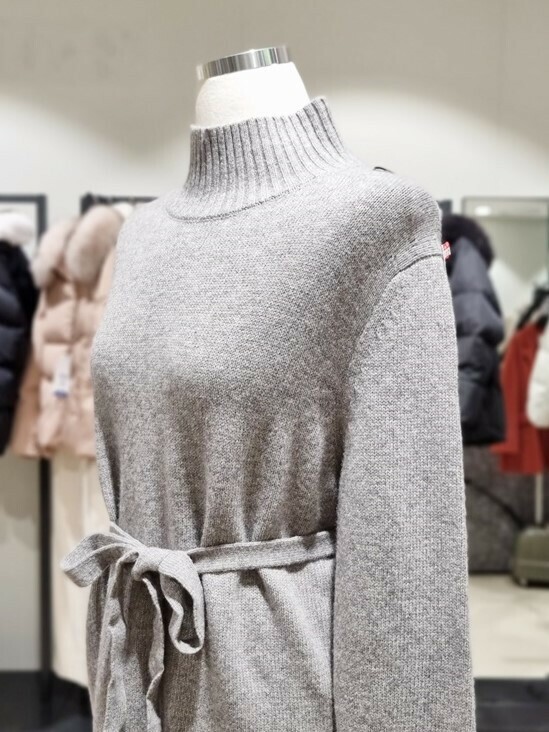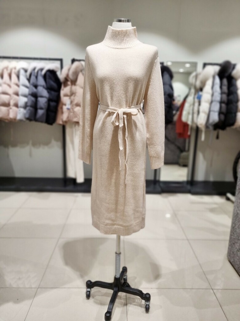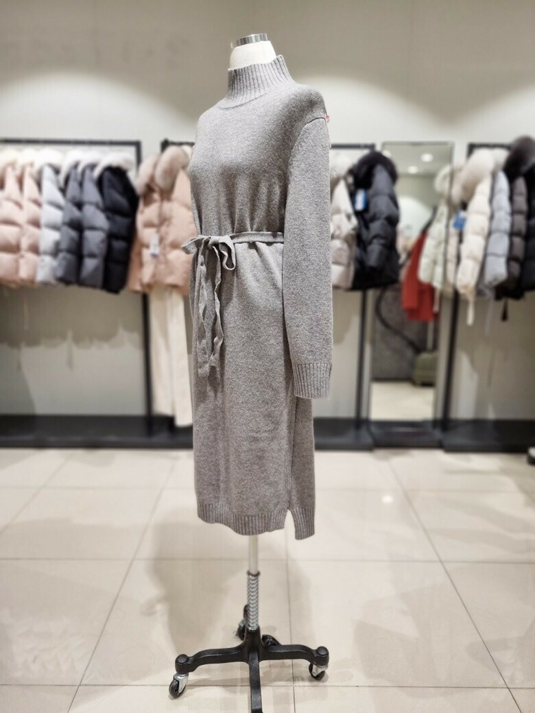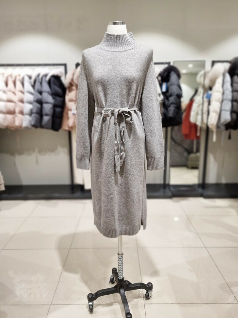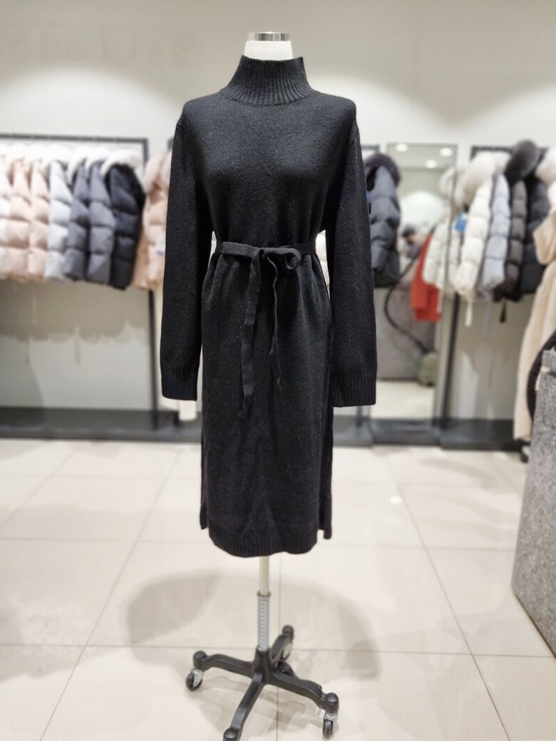 앞 뒤 기장이 언밸런스한 하이넥 디자인의 니트 원피스입니다.