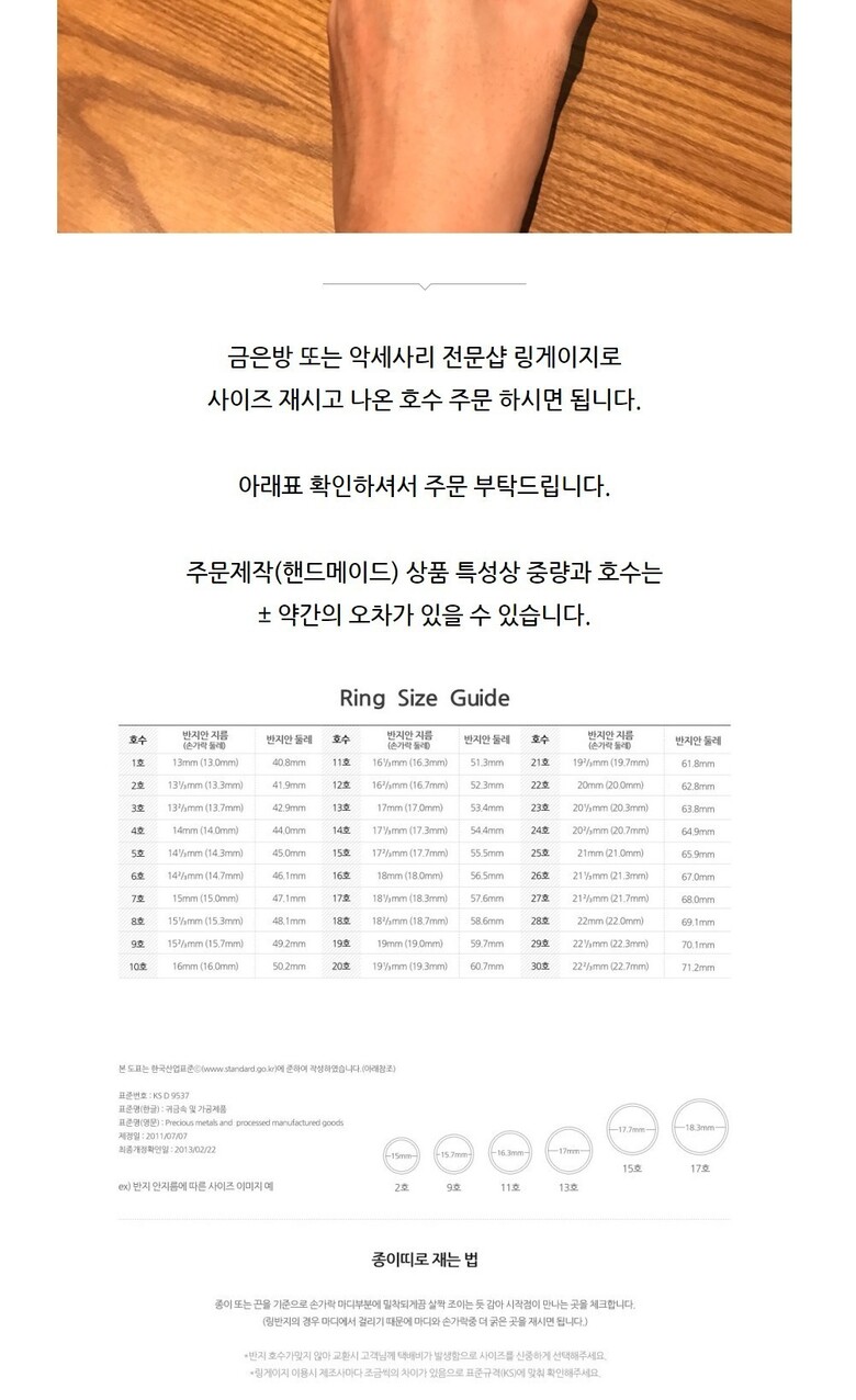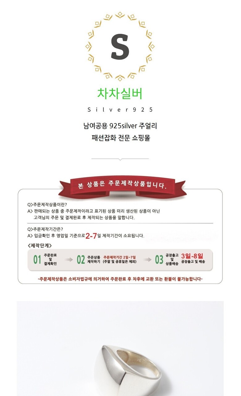 1. 소재 / 순도 / 밴드재질 | 순은 92.5%이상 함량 |