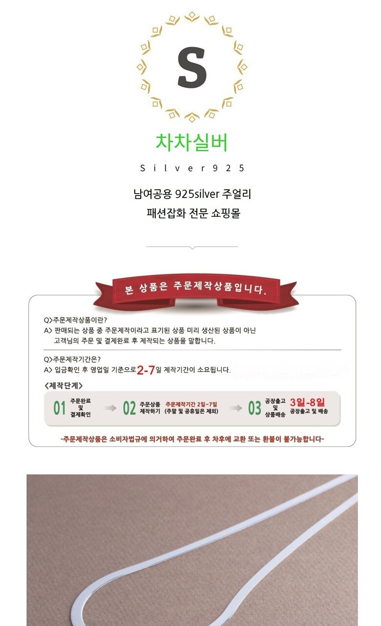 1. 소재 / 순도 / 밴드재질 | 순은 92.5%이상 함량 |