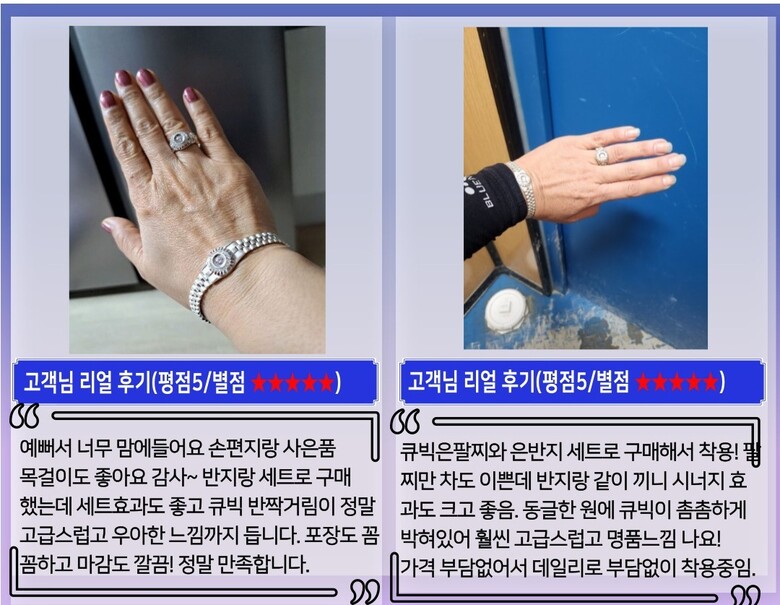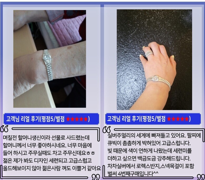 1. 소재 / 순도 / 밴드재질 순은 92.5%이상 함량