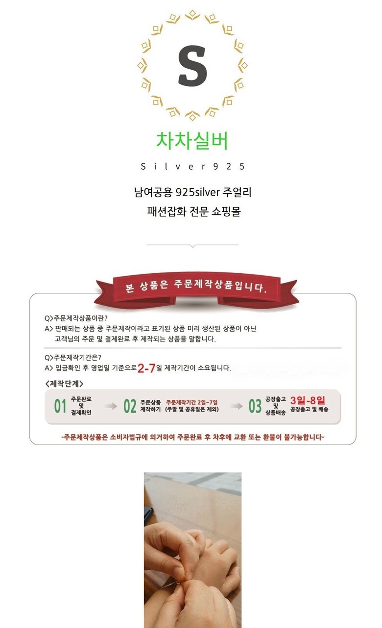 1. 소재 / 순도 / 밴드재질 | 순은 92.5%이상 함량 |