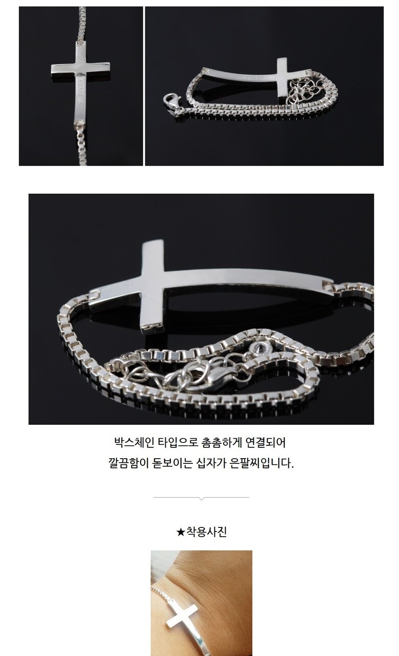 십자가 은팔찌 박스체인 925실버 종교무관 패션아이템